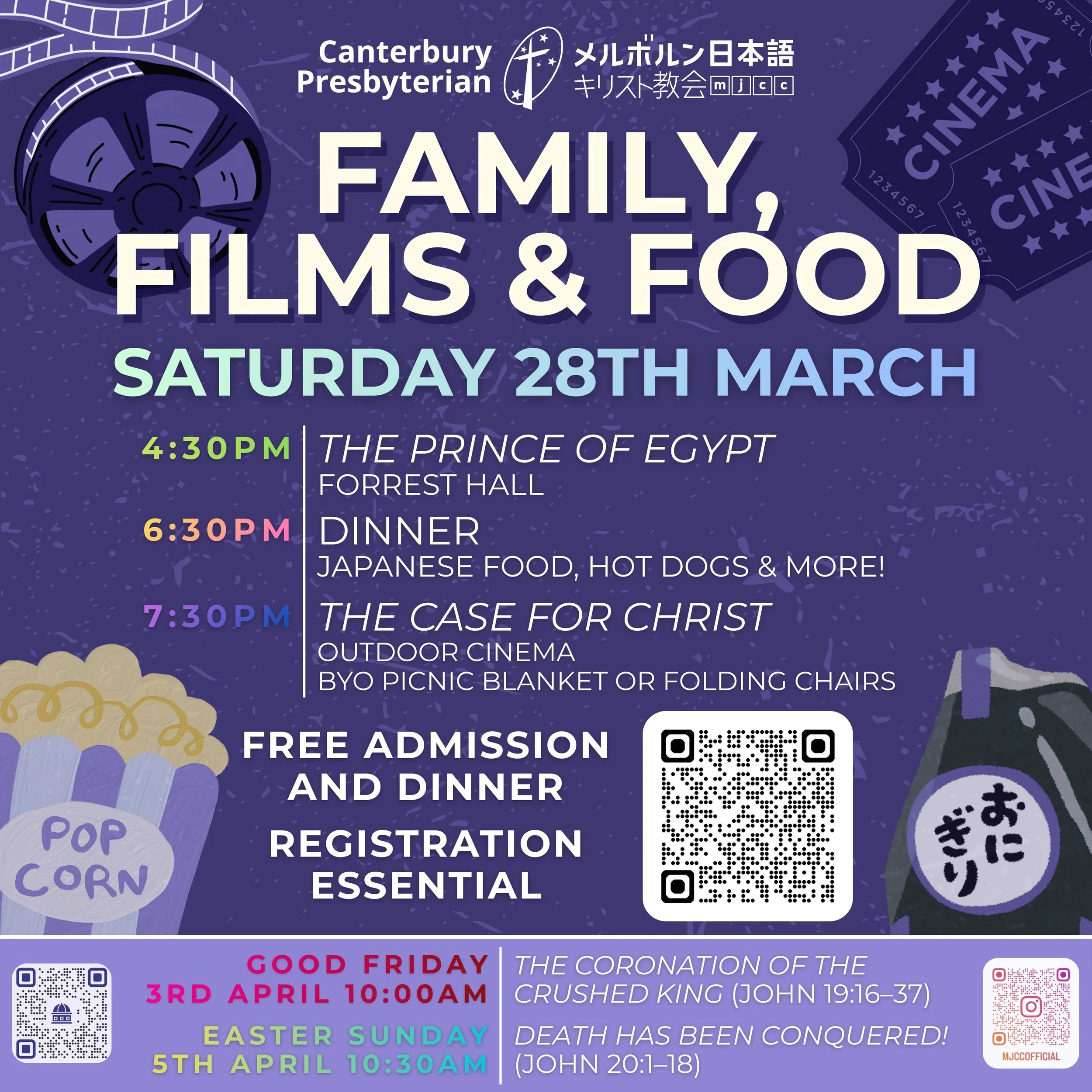 At Canterbury Presbyterian ChurchJoin us for a relaxed evening of films, food, and community—something for all ages!